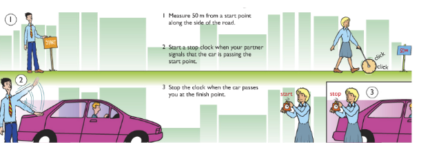 Suppose you want to find the speed of cars driving down your road. You may have seen the police using speed guns to check that drivers are keeping to the speed limit. Speed guns use microprocessors to produce an instant reading of the speed of a moving vehicle, but you can conduct a very simple experiment to measure car speed.