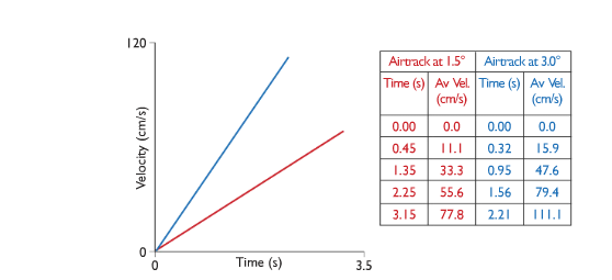 - By changing the tilt of the runway different values of acceleration are obtained. Repeat a number of times.