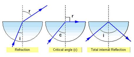3.20 describe the role of total internal reflection in transmitting information along optical fibres and in prisms