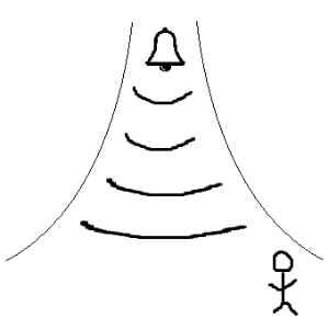Sound is produced behind a nearby wall. After few seconds, a second sound is heard. Due to the reflection of sound wave echo is heard.