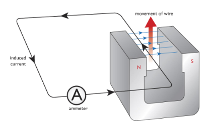 When a wire cuts the magnetic field of a magnet, a voltage is induced in the wire. This phenomenon is called electromagnetic induction.